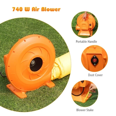 - Easy to Inflate & Sweet Accessories: Coming with a UL certificated 740W blower(this blower equipped with portable handle,dust cover and blower stake) , carrying bag, 4 bouncer stakes, 4 blower stakes, 6 repair patches and a wire package for your convenience.
