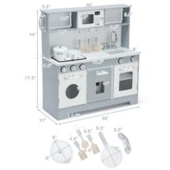 Costway Pretend Play Kitchen Wooden Toy Set For Kids W/ Realistic Light & Sound