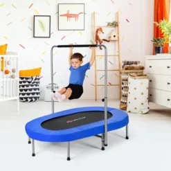 Costway Foldable Trampoline Double Mini Kids Fitness Rebounder W/ Adjustable Handle RedBlue
