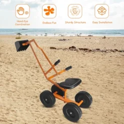 Costway Folding Kids Metal Snow Sled Frost-Resistant Pull Rope Snow Slider Leather Seat