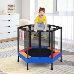 Costway 48” Hexagonal Kids Trampoline Recreational Bounce Jumper W/Foam Padded Handrails