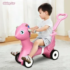 Costway Baby Rocking Horse 4 In 1 Kids Ride On Toy Push Car W/ Music